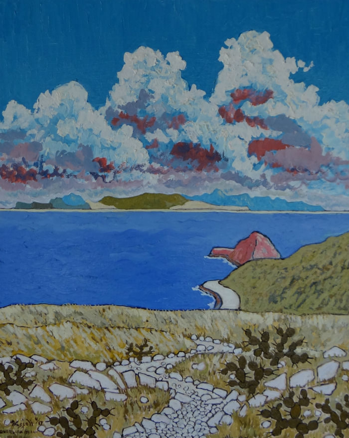 743. Overlook Trail 4/17 January 31, 2022 by Wassell Art2 743. Overlook Trail 4/17 Size 24″ X 30″ View shows Anacapa, and Santa Cruz Islands from Mugu State Park.