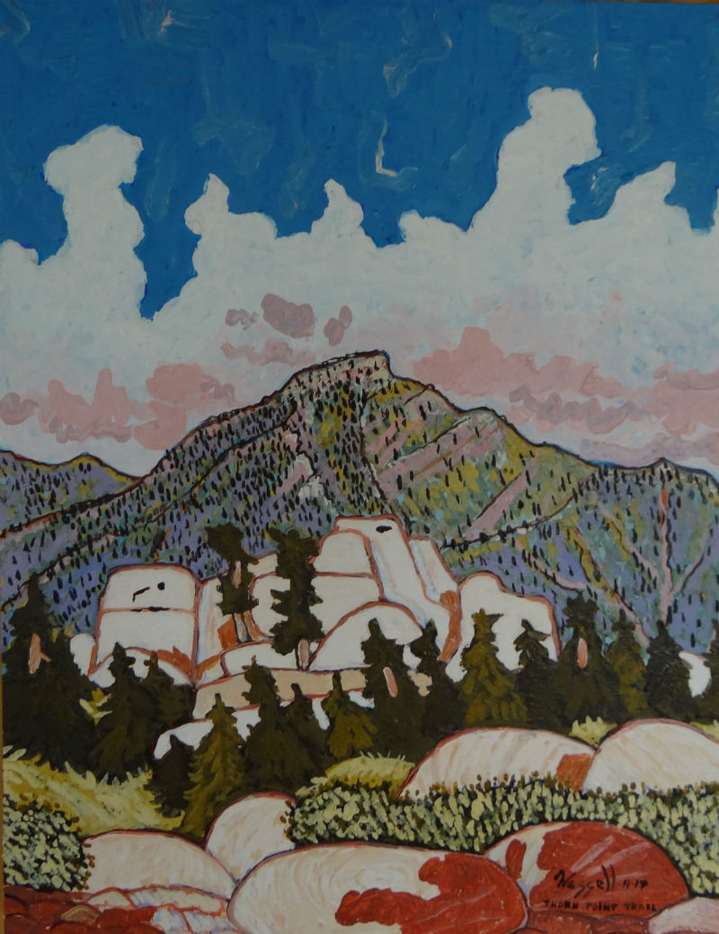 773 Thorn Point Trail 11/17 January 31, 2022 by Wassell Art2 773 Thorn Point Trail 11/17 Size 19″ X 24″ I hiked down into the rocks South of the Fire Tower. View shows Chief Peak through the rocks.